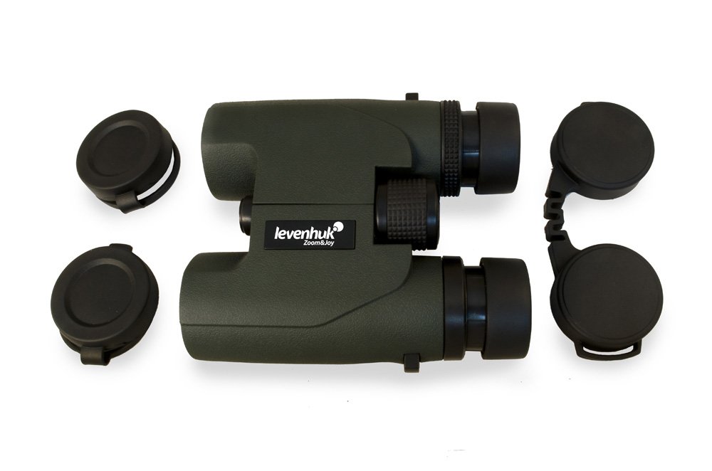 В конструкции бинокля предусмотрено все для удобного использования. Пользователь может поменять межзрачковое расстояние и откорректировать диоптрии. Окуляры снабжены поворотно-выдвижными наглазниками, с помощью которых можно быстро подобрать оптимальное положение бинокля относительно глаз. Наглазники имеют плавный ход. Плотное рельефное покрытие корпуса защищает бинокль от механических повреждений и обеспечивает надежный захват. Levenhuk Karma PRO 8x32 водонепроницаем, так что им можно пользоваться даже в непогоду.