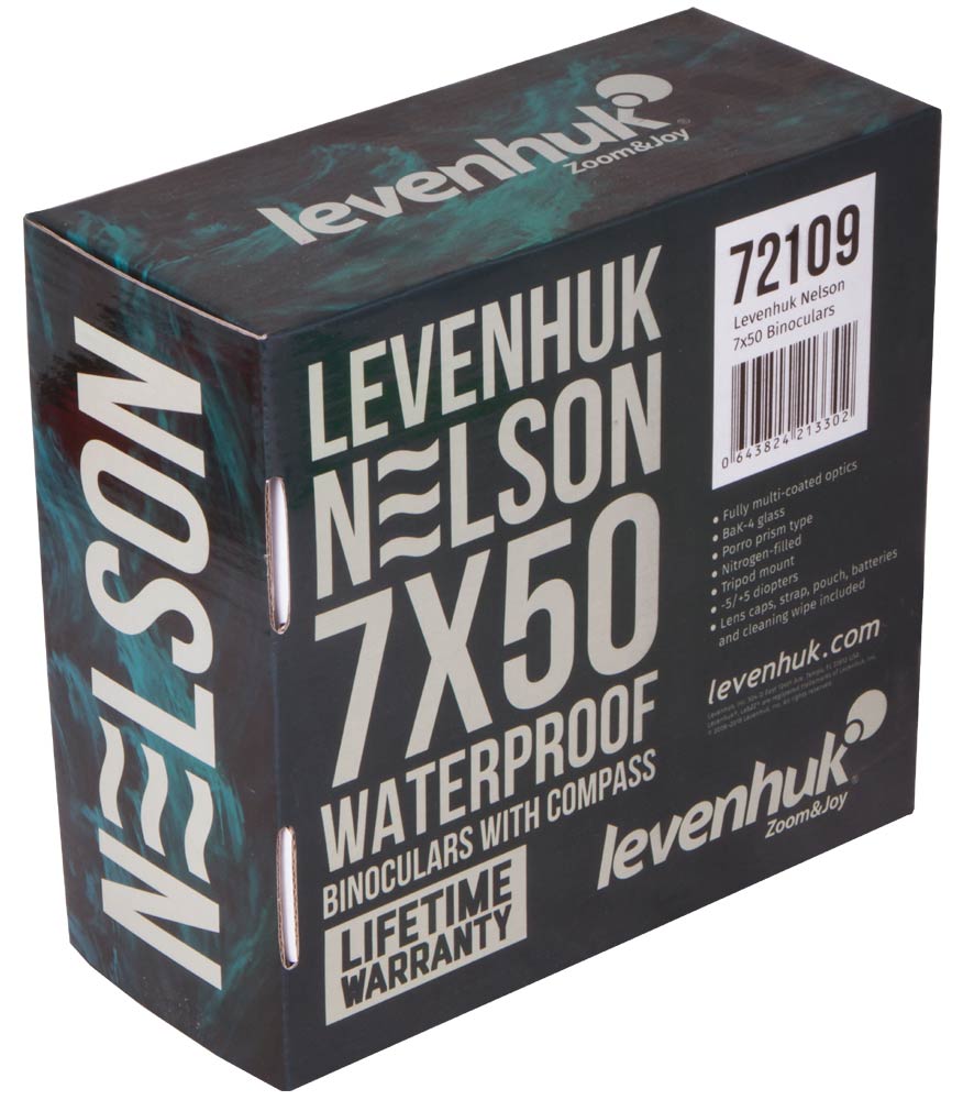Бинокль Levenhuk Nelson 7x50 выполнен не только в герметичном, но и непотопляемом корпусе – при попадании в воду оптический прибор не уйдет на глубину, а линзы и призмы не повредятся. Добавьте к биноклю яркий плавающий ремень Levenhuk FS10, и вы никогда его не потеряете!