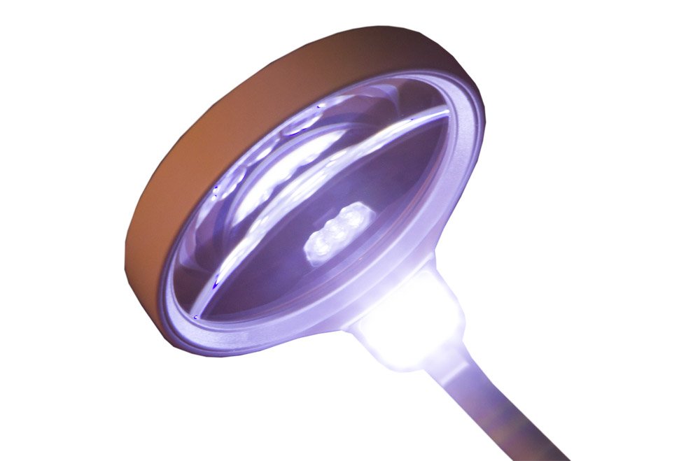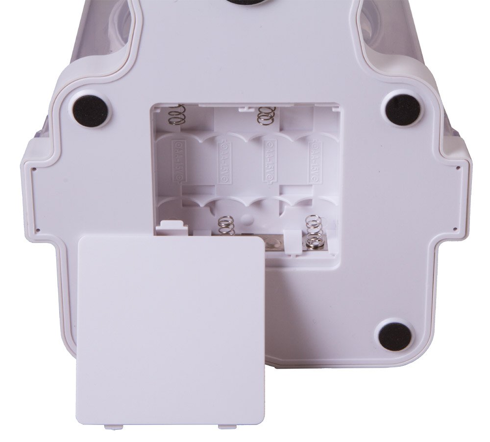 Подсветка на штативе состоит из шести светодиодов, угол наклона которых можно регулировать. В ручку встроено два светодиода. Обе подсветки работают от батареек, а подсветку на штативе можно запитать и от сети переменного тока (сетевой адаптер включен в комплект поставки).