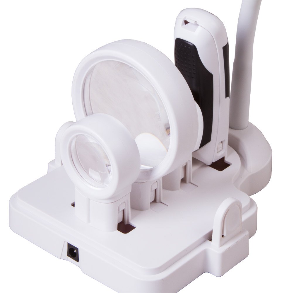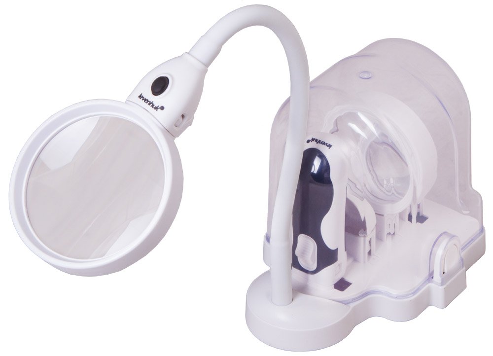 Levenhuk Zeno Multi ML15 – удобный оптический инструмент для профессиональной деятельности и верный помощник в домашних делах. Мультилупа состоит из устойчивого основания с гибким держателем и отделением для хранения аксессуаров. На держатель можно установить любую из сменных линз – в комплекте их три – или плафон для подсветки. Линзы превратят Levenhuk Zeno Multi ML15 в классическую лупу на штативе, а плафон – в удобную настольную лампу. В комплекте есть и эргономичная ручка. Линзы устанавливаются и на нее, так получится классическая просмотровая лупа.