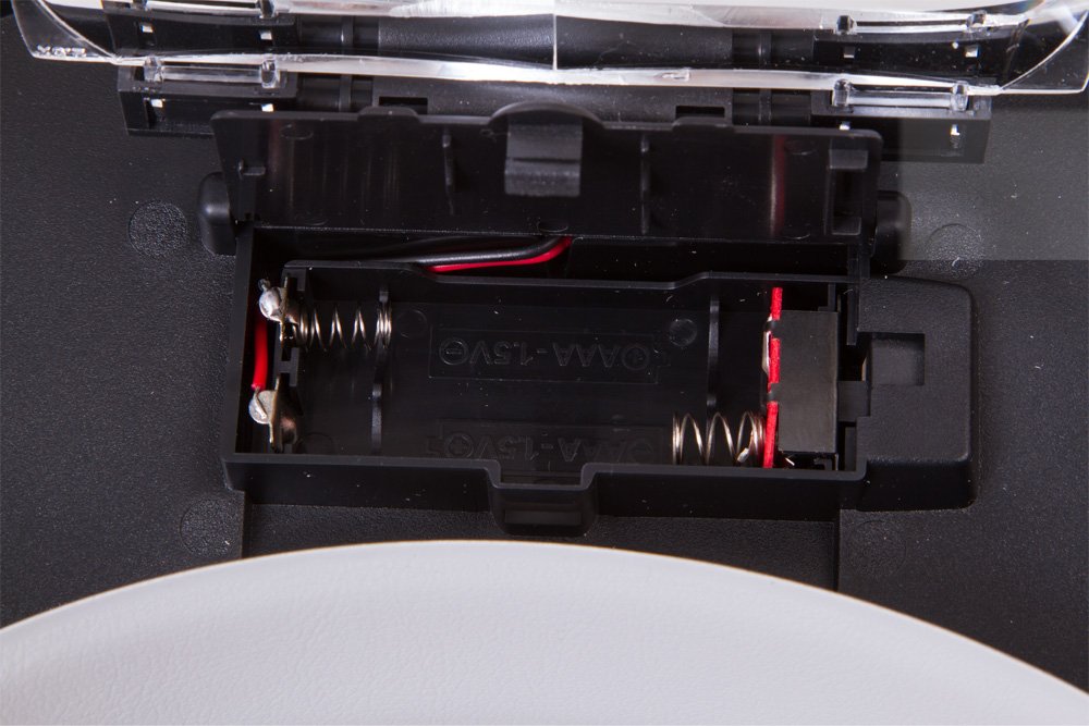 Лупа Levenhuk Zeno Vizor H3 фиксируется на голове при помощи специального гибкого обруча. Это помогает освободить руки для работы. Для освещения рабочей области используется светодиодная подсветка. Она работает от батареек, которые необходимо приобрести отдельно.