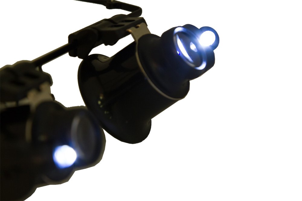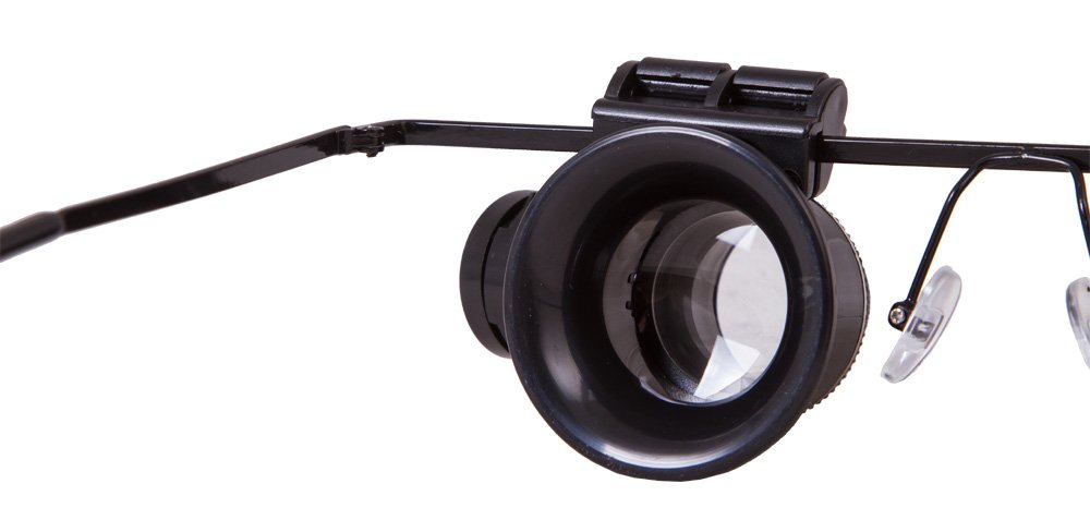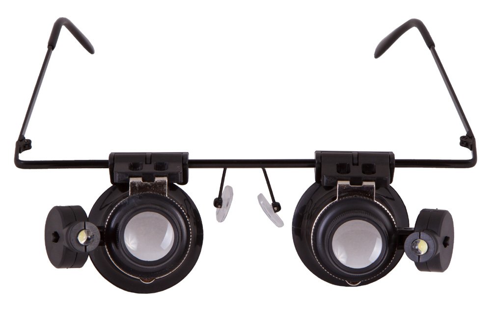 Лупа-очки Levenhuk Zeno Vizor G2 – 20-кратная лупа на очковой оправе с парой независимых линз. Линзы можно перемещать по оправе, точно регулируя расстояние между ними. Есть возможность откинуть линзы, если требуется смотреть без увеличения.