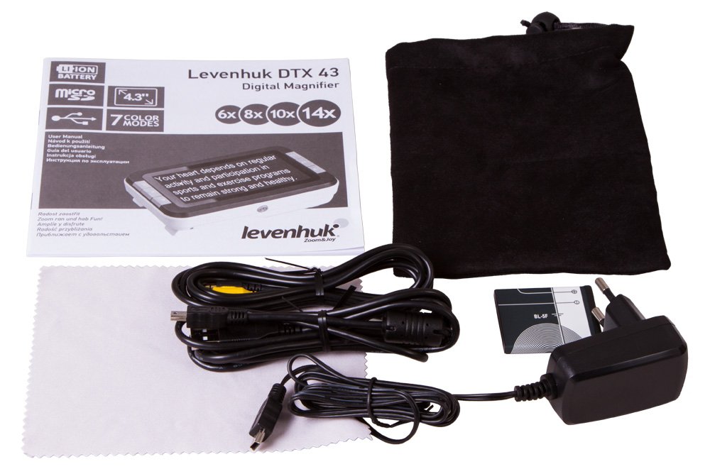 Цифровая лупа Levenhuk DTX 43 – современная лупа для слабовидящих людей и тех, кто много работает с текстами и мелкими иллюстрациями. Она имеет четыре фиксированных увеличения, снабжена светодиодной подсветкой и позволяет выбирать цветовой режим для чтения. Вы можете читать текст со встроенного ЖК-экрана или с внешнего экрана. Лупу можно подключать через USB и HDMI к компьютеру или телевизору.