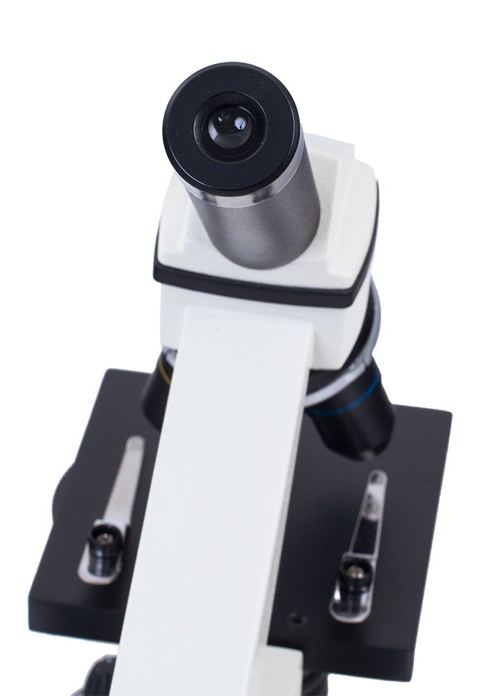 Микроскоп комплектуется тремя объективами 4х, 10х и 40х и широкопольным окуляром WF16х. Предметный столик оснащен зажимами для надежной фиксации препарата.