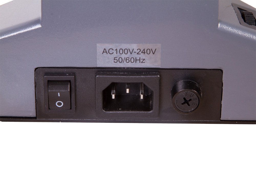 Для освещения образцов используется встроенная светодиодная подсветка с регулировкой яркости. Она находится под предметным столиком и позволяет изучать любые прозрачные образцы в проходящем свете. Для точной фокусировки пучка света на изучаемом объекте применяется встроенный конденсор Аббе с ирисовой диафрагмой. Для его центрирования можно использовать специальные рычаги перемещения.