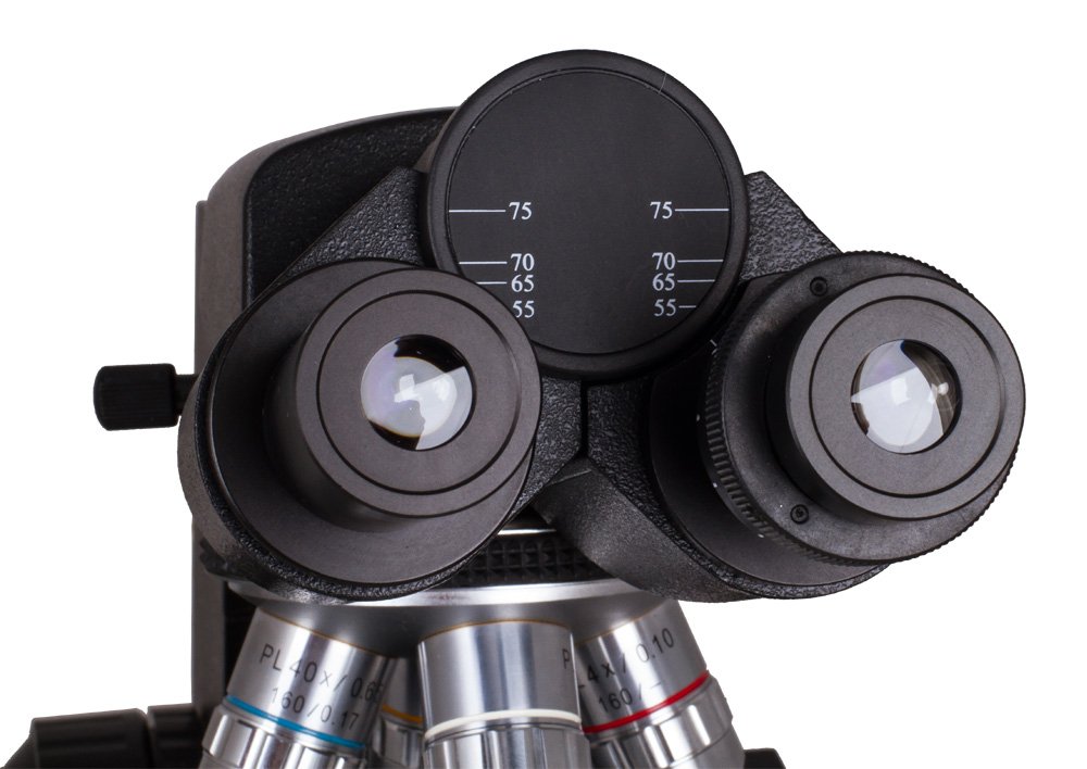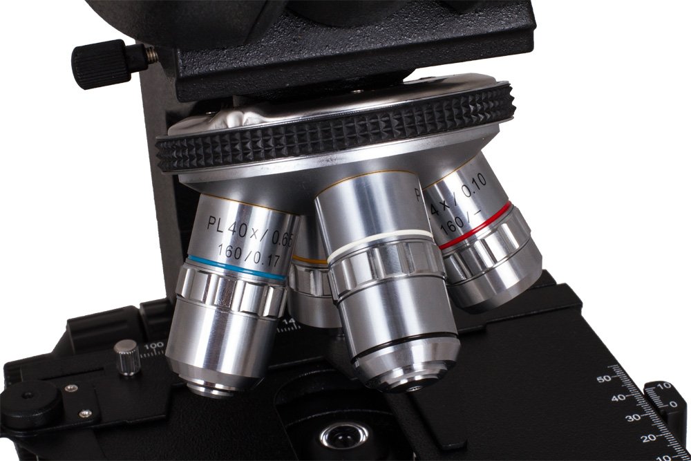 Бинокулярный микроскоп с поворотной насадкой и углом наклона в 30° предназначен для проведения исследований биологических образцов на профессиональном уровне. Микроскоп поддерживает возможность проведения исследований по методу светлого поля. Револьверное устройство микроскопа на четыре объектива: 4х; 10х; 40х; 100х. Широкопольные окуляры WF 10х и WF 20х. Микроскоп оснащен встроенной галогенной лампой, яркость которой можно регулировать. Оптические элементы имеют полное многослойное просветление. В комплект входят три фильтра и иммерсионное масло.