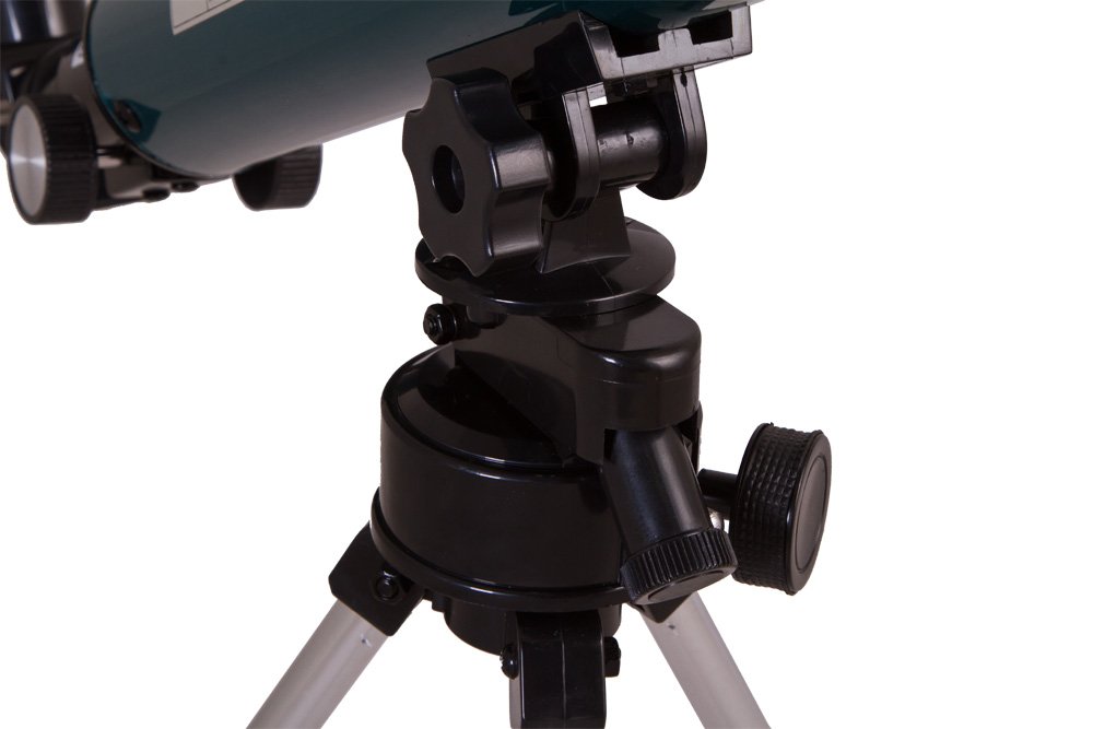 Удобная азимутальная монтировка позволяет перемещать оптическую трубу по горизонтали и вертикали. Пользоваться монтировкой очень просто. Для устойчивости телескоп снабжен надежной настольной треногой.