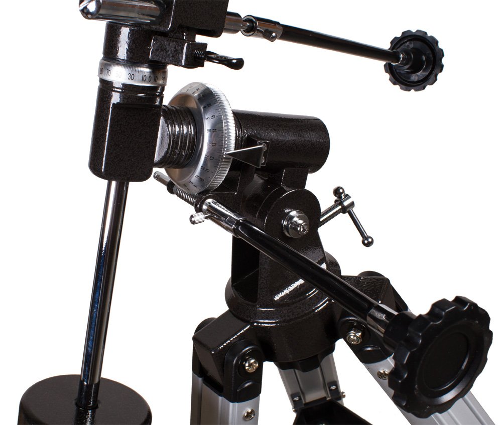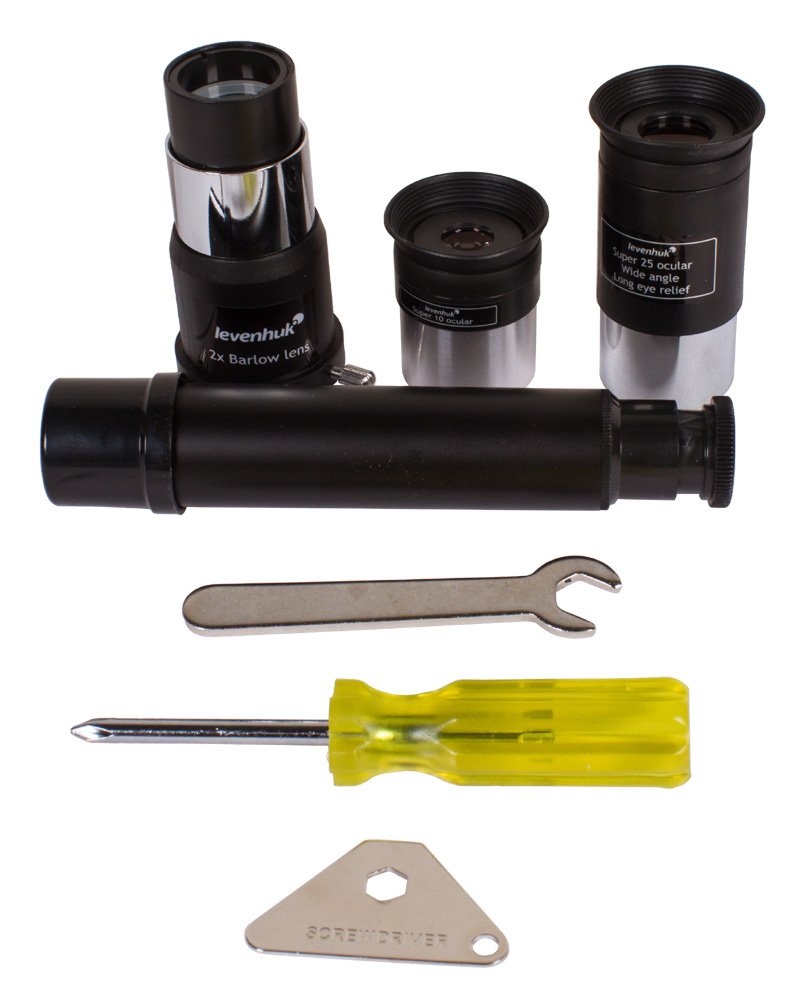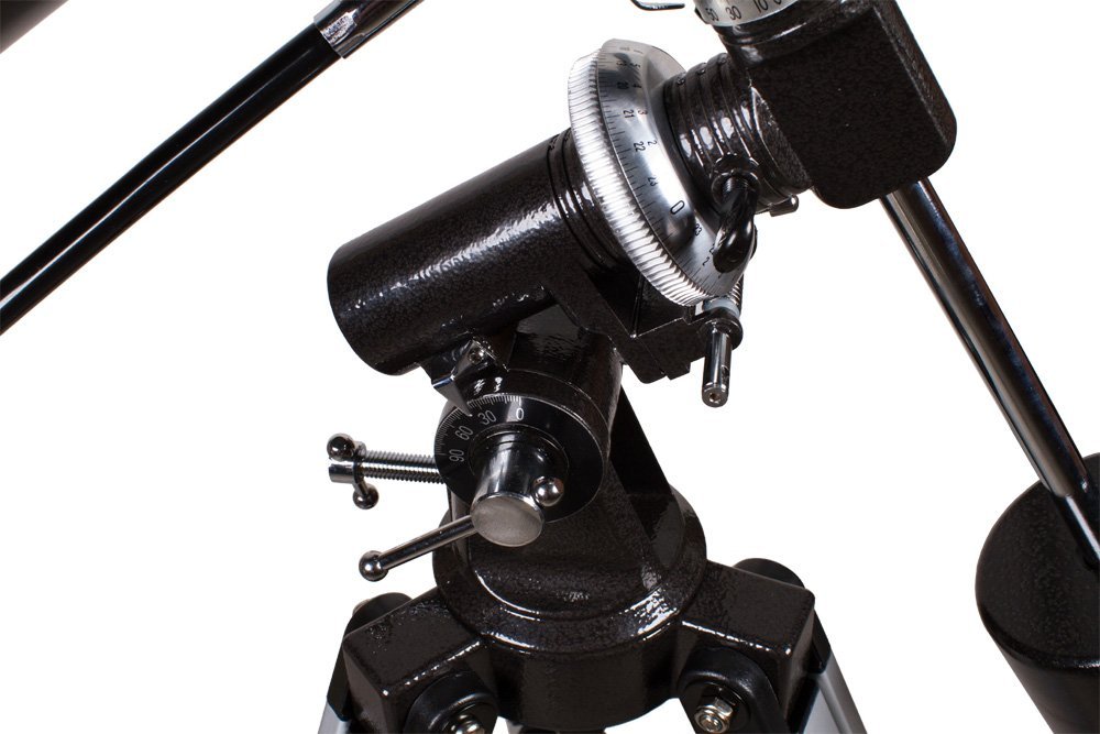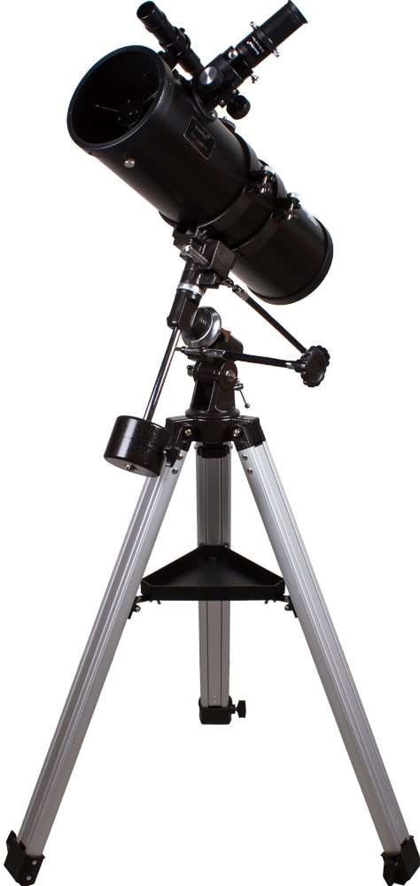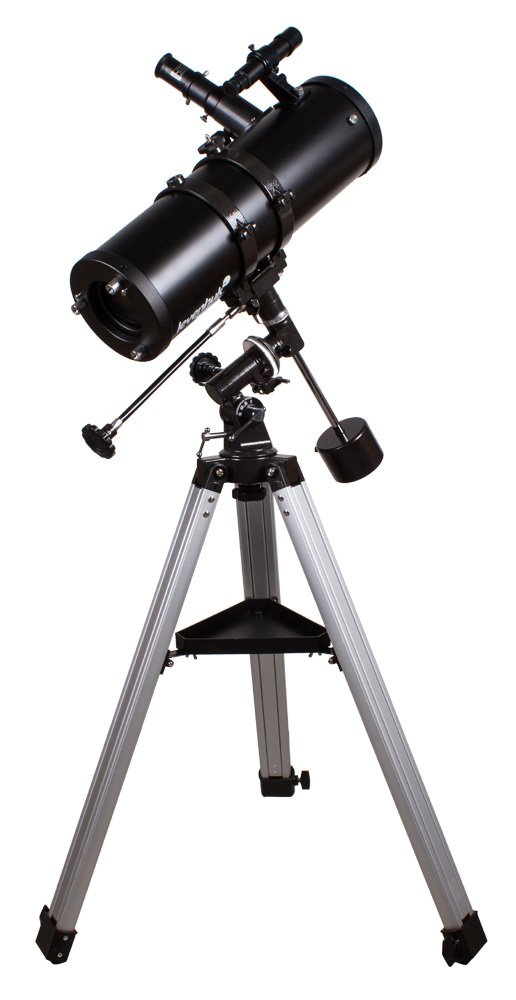 Рефлектор Ньютона с диаметром объектива 114 мм и фокусным расстоянием 500 мм с полной уверенностью можно отнести к разряду универсальных телескопов. Зеркала не имеют искажений цветопередачи – хроматической аберрации, – поэтому получаемое изображение максимально четко передаст цветовую гамму поверхности Луны и планет. Телескоп поможет «разглядеть» объекты дальнего космоса: звездные скопления, туманности, галактики. Телескоп оснащен экваториальной монтировкой с ручками тонких движений и допускает установку электропривода часовой оси (приобретается отдельно). Фокусировщик реечного типа имеет посадочный диаметр под окуляры стандарта 1,25", что позволяет использовать с телескопом множество окуляров. Максимальное полезное увеличение – 230 крат. Искатель 5х позволит быстро навести телескоп на нужный участок неба. Телескоп Levenhuk Skyline 120x1000 EQ поставляется в комплекте с двумя окулярами, имеющими поле зрения 52 градуса и фокусные расстояния 10 мм и 25 мм и дающими результирующее увеличение 100 и 40 крат соответственно. Телескоп прост в использовании, компактен и транспортабелен, что делает его привлекательным для любителей астрономии. Хорошо подойдет начинающим пользователям.