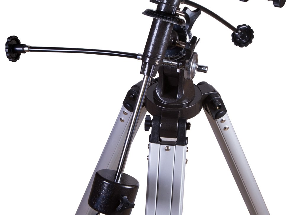 В комплект входят два окуляра, обеспечивающие увеличение 36 и 90 крат. Экваториальная монтировка позволяет тратить меньше времени на наведение, а также дает возможность вести объект вращением вокруг только одной оси.