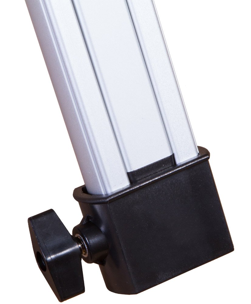 Телескоп установлен на азимутальную монтировку, которая позволяет перемещать оптическую трубу по горизонтали и по вертикали. Levenhuk Skyline BASE 80S наводится на астрономические объекты просто и быстро – с управлением легко справится даже ребенок. 6-кратный оптический искатель – дополнительная помощь при наведении. Монтировка, в свою очередь, фиксируется на алюминиевой треноге. Она стоит устойчиво и не качается даже на неровных поверхностях. Высоту ее ножек можно регулировать. Есть лоток для аксессуаров.