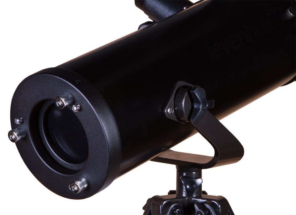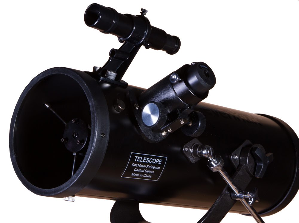 В основе оптической схемы телескопа лежит главное зеркало диаметром 114 мм. Оно передает четкую и контрастную картинку, позволяет изучать даже слабые звезды до 12 звездной величины. Управляется телескоп вручную, для точного наведения на астрономические объекты используется 5-кратный оптический искатель (в комплекте).