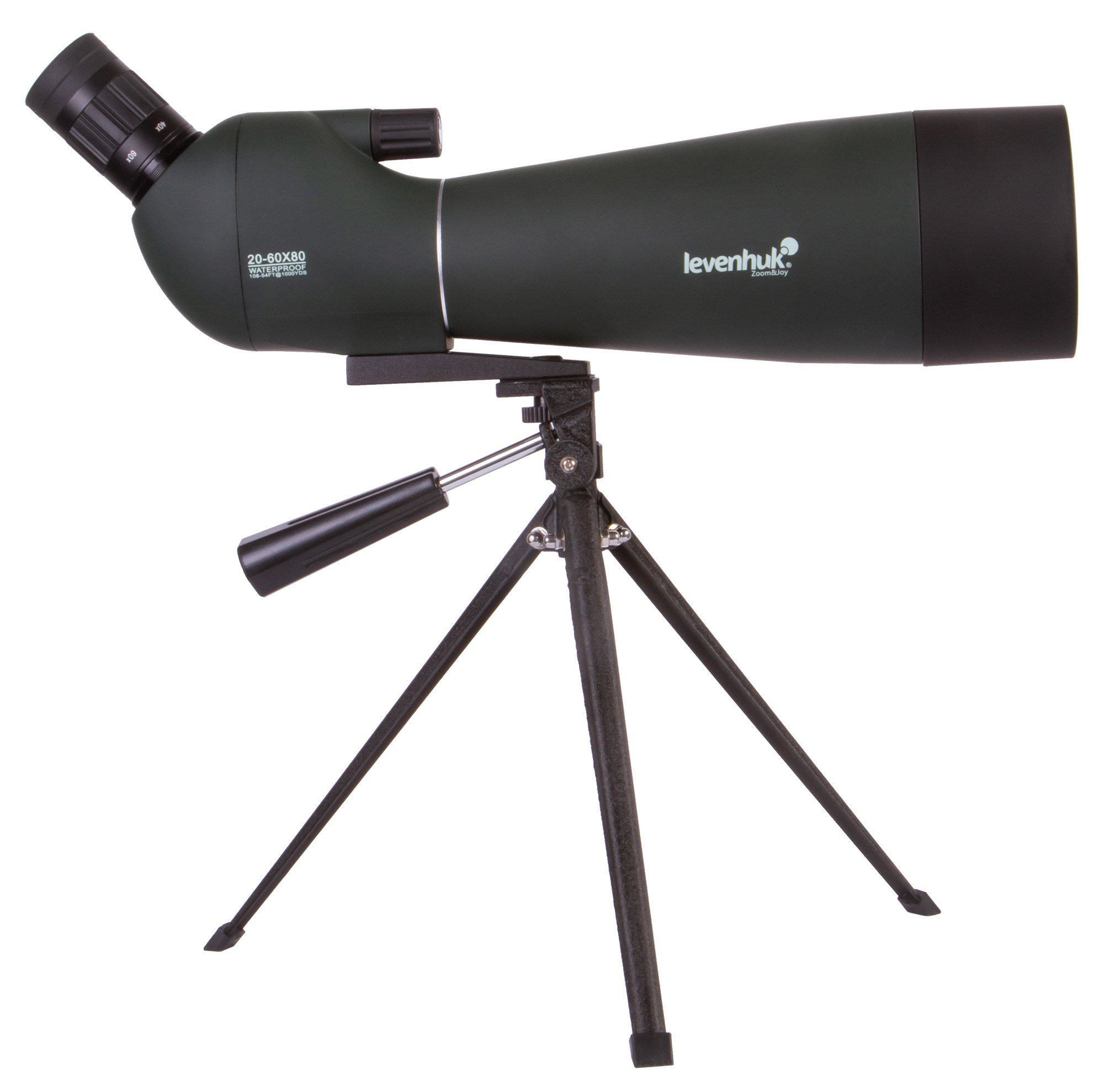 Все оптические элементы сделаны из стекла BK-7 и защищены несколькими слоями просветления. Объектив диаметром 80 мм собирает достаточно света для ведения наблюдений при слабой освещенности, например в пасмурную погоду, при низкой облачности или в сумерках. Диапазон увеличений составляет от 20 до 60 крат. Зрительная труба передает четкую, контрастную и геометрически верную картинку в естественных цветах. Пользователям с неидеальным зрением понравится большой вынос зрачка, позволяющий вести наблюдения в очках, и диоптрийная коррекция окуляра, с помощью которой можно максимально точно настроить резкость.