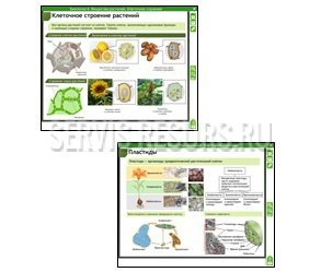 Пособие включает набор из 12 электронных плакатов по темам: Увеличительные приборы; Клеточное строение растений; Пластиды; Запасные вещества и ткани растений; Строение растительной клетки; Покровная ткань растений; Механическая ткань растений; Образовательная ткань растений; Основная ткань растений; Проводящая ткань растений (ксилема); Проводящая ткань растений (флоэма); Жизнедеятельность клетки.