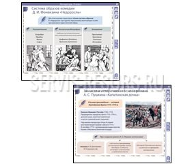 Пособие включает набор из 12 электронных плакатов по темам: Основные направления русской литературы XVIII века; Система образов комедии Д. И. Фонвизина «Недоросль»; Романтизм как художественное направление; Поэма М. Ю. Лермонтова «Мцыри» как романтическое произведение; «Маленький человек» в произведениях Н. В. Гоголя; Замысел и историческая основа романа А. С. Пушкина «Капитанская дочка»; Система образов романа А. С. Пушкина «Капитанская дочка»; А. С. Пушкин «Капитанская дочка». Словарь историзмов и архаизмов; Изображение природы в лирике Ф. И. Тютчева и А. А. Фета; Основные мотивы лирики Н. А. Некрасова; Цикл рассказов И. С. Тургенева «Записки охотника»; Характеристика героя литературного произведения (примерный план).