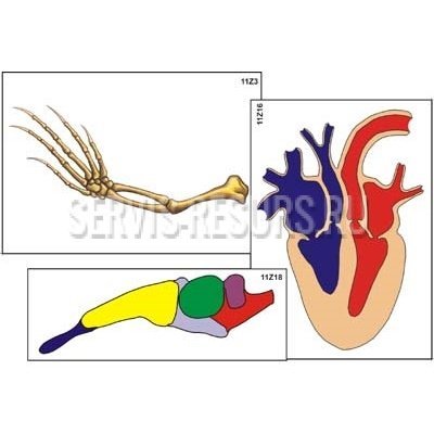 1. Если изучается внутреннее строение какого-либо из классов позвоночных, то на доске монтируются карточки, изображающие: