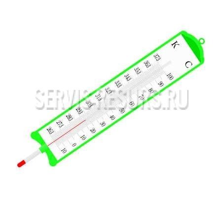Представляет собой баллон, соединенный со стеклянной трубкой-капилляром, заполненной подкрашенной жидкостью. Трубка закреплена на основании, оцифрованном в градусах Цельсия и Кельвина.