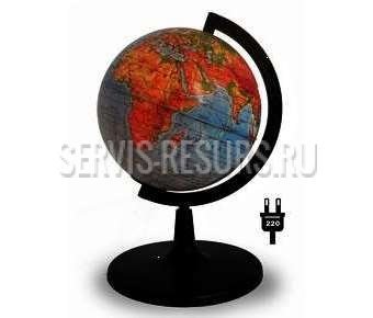 Предназначен для демонстрации при изучении курса географии. Представляет собой модель земного шара с политической картой. Глобус политический дает возможность продемонстрировать расположение на поверхности земного шара государств, наиболее крупных городов. Внутри глобуса установлена лампа для подсветки.