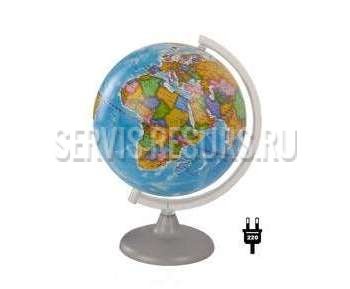 Предназначен для демонстрации при изучении курса географии. Представляет собой модель земного шара с политической картой. Глобус политический дает возможность продемонстрировать расположение на поверхности земного шара государств, наиболее крупных городов. Внутри глобуса установлена лампа для подсветки.