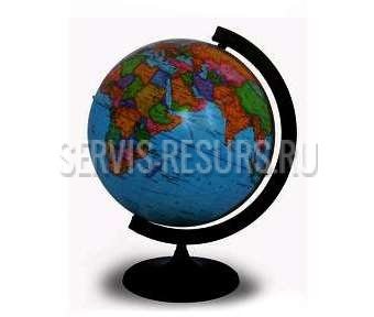 Предназначен для демонстрации при изучении курса географии. Представляет собой модель земного шара с политической картой. Глобус политический дает возможность продемонстрировать расположение на поверхности земного шара государств, наиболее крупных городов.