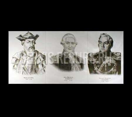 Представляют собой комплект портретов формата А3 297?420 мм в количестве 25 шт., выполненных на качественной белой бумаге. На портретах указаны фамилии (с именами, либо с именами и отчествами) и даты жизни путешественников.