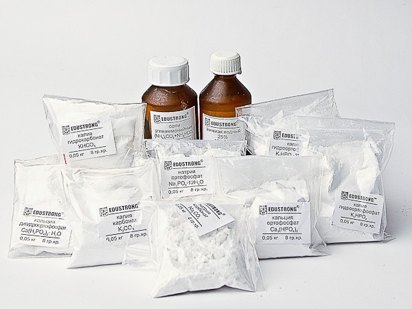Фасовка каждого реактива в наборах, как правило, удовлетворяет годовую потребность в нем для одного кабинета химии. Полный комплект обеспечивает возможность проведения демонстрационных и лабораторных опытов в соответствии с программой.