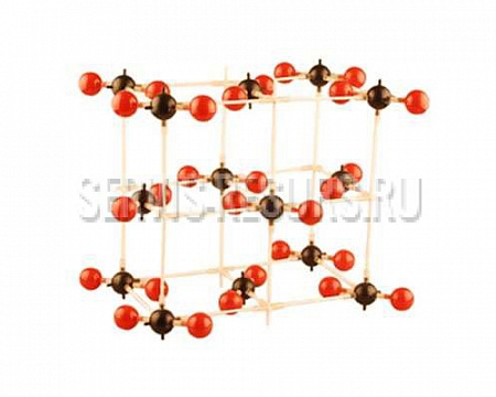 Модель предназначена для демонстрации строения элементарной ячейки кристаллической решетки углекислого газа при изучении курсов физики и химии на уроках по темам «Мир кристаллов», «Атомно-молекулярное учение», «Строение веществ».