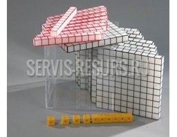 Модель представляет собой пластмассовый куб со стороной 10 см, на гранях которого нанесена сетка 1х1 см. Один слой съемный, который в свою очередь может быть разделен на фрагменты, один из которых составляет десятую часть его и второй - единица объема – 1 куб. см.