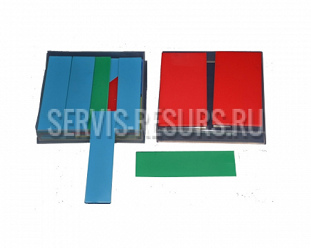 Набор пластиковых пластин квадратной формы, которые могут разделяться на 2, 3, 4 и 6 частей. Деление квадрата на 3 части можно осуществить прямоугольными пластинами или треугольниками; на 4 части – прямоугольниками, квадратами или треугольниками; на 6 частей – только прямоугольниками.