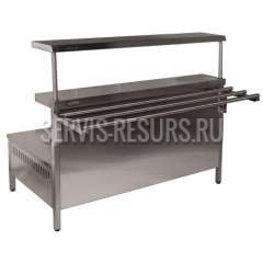 Высота столешницы с конфорками для подогрева кастрюль и котлов находится на расстоянии 450 мм от уровня пола, что позволяет снизить нагрузку на обслуживающий персонал. Диаметр одной конфорки составляет 220 мм. Три уровня регулировки нагрева конфорок задают температуру от 50 до 350°C.
