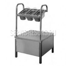 Прилавок предназначен для выкладки столовых приборов: ножей, вилок, ложек. Рабочая поверхность прилавка предназначена для выкладки подносов. Общие габариты (Д/Ш/В) 630х700х1210 мм. Функцию емкостей для выкладки выполняют 3 стандартные гастроемкости GN-1/3-150 объемом 0,8 л каждая. Имеется хлебница. Нижняя часть прилавка приспособлена для выкладки подносов. Изготовлен прилавок из нержавеющей стали AISI-304.