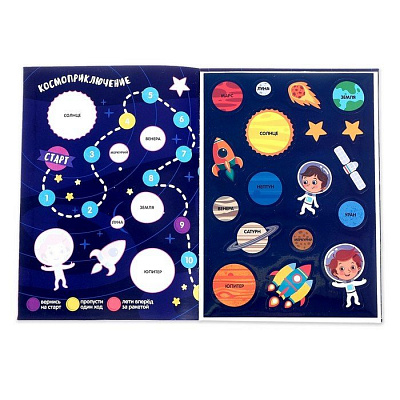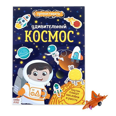 Активити книга с наклейками и игрушкой «Удивительный космос», 12 стр. — отличный вариант для тех родителей, которые привыкли окружать своего малыша только лучшими и качественными вещами. За такой книжкой ваш ребёнок проведёт время с пользой и удовольствием, узнает много нового и интересного.