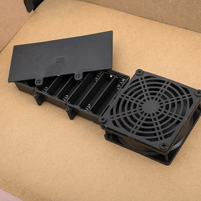- Вставьте 8 батареек типа АА и запустите поток воздуха.