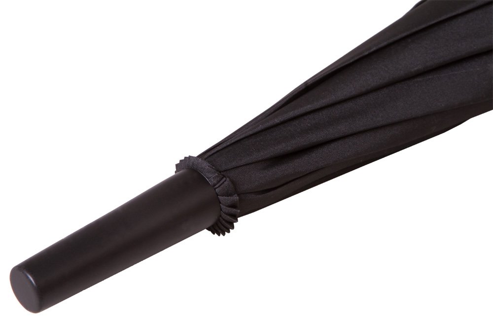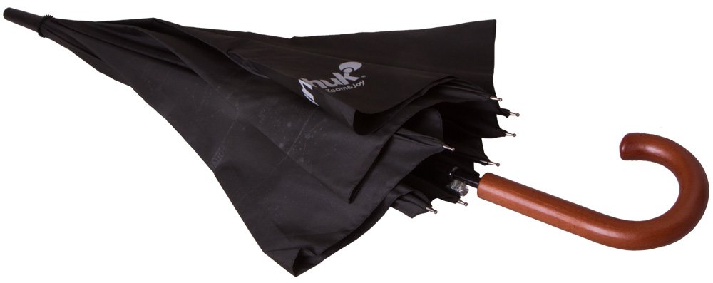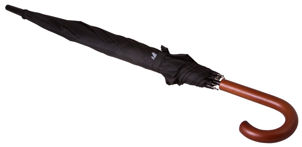 Купол сделан из однослойного эпонжа. Этот материал отталкивает воду, не давая ей собираться на поверхности. Капли дождя быстро скатываются с купола, не впитываются и не оставляют следов. Купол закреплен на прочном алюминиевом стержне и спицах из стекловолокна и стали. Конструкция прочная и крепкая. Ручка в форме крюка сделана из дерева. Конструкция зонта – классическая трость с автоматическим открытием.