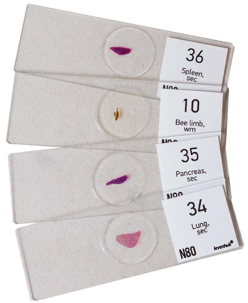 Набор готовых микропрепаратов Levenhuk N80 NG «Увидеть все!» сделает знакомство с микромиром простым и увлекательным. Набор подходит для любого биологического микроскопа. В комплект входит 80 образцов тканей растений, животных и человека, а также часто встречающихся веществ. Все препараты уже подготовлены к изучению.